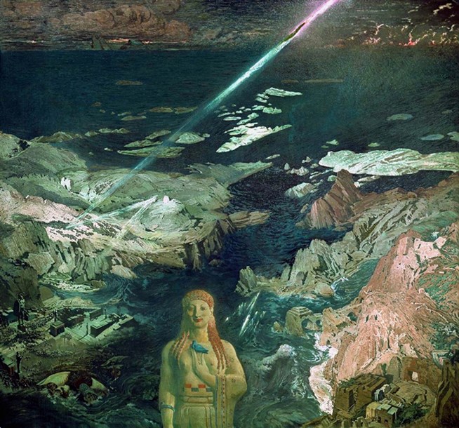 Л.С. Бакст. Древний ужас. (Terror Antiquus). 1908 год. Холст, масло. Русский музей, Петербург.
