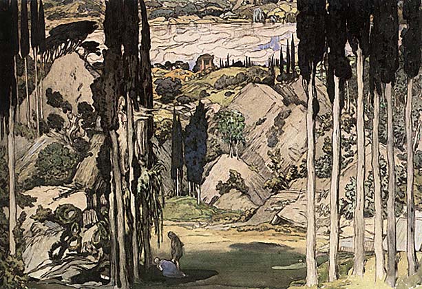 Эскиз Л. С.Бакста к балету Мориса Равеля «Дафнис и Хлоя».