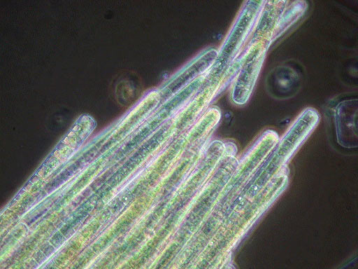 Морские планктонные цианобактерии (Trichodesmium). Ее массы населяют теплые моря и океаны. Фиксирует азот, что имеет огромное значение для жизни океана.