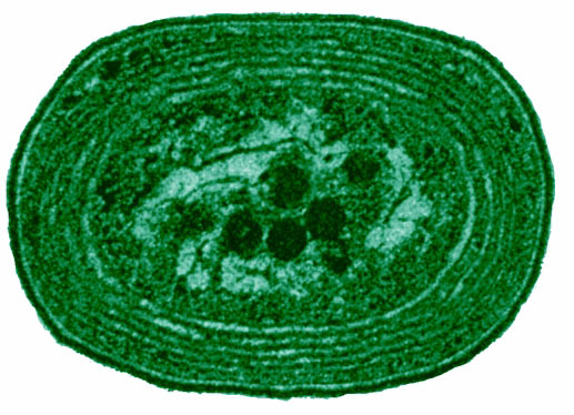 Структура оксифотобактерии Prochlorococcus под микроскопом.