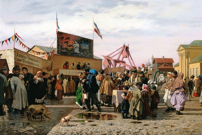 Андрей Андреевич Попов (1832-1896). Балаганы в Туле на Святой неделе. 1873 год. Русский музей, Петербург.
