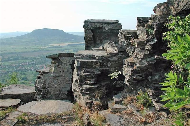 Балатон. Гора Бадачонь (437 м) — бывший вулкан. На ее склонах находятся окаменелые колонны из лавы, нижние склоны горы покрыты виноградниками.