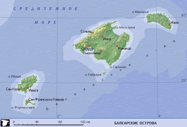 Балеарские острова (географическая карта).