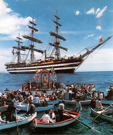 Праздник Св. Николая Мирликийского — покровителя мореплавателей. На заднем плане корабль «Америго Веспуччи».