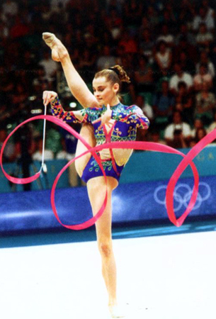 Абсолютная чемпионка Олимпийских игр в Сиднее (2000) по художественной гимнастике Юлия Барсукова. Упражнение с лентой.