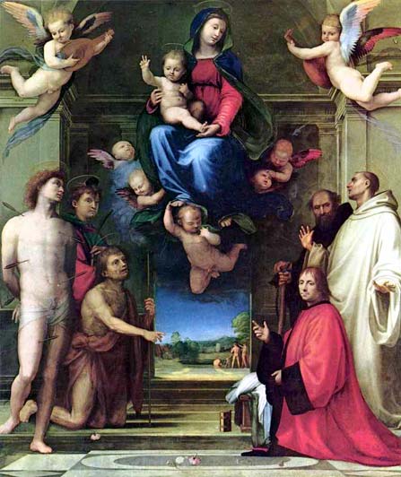 Фра Бартоломео. Мария со святыми и с донатором Жаном Карандоле. 1511-1512 годы. Собор в Безансоне.