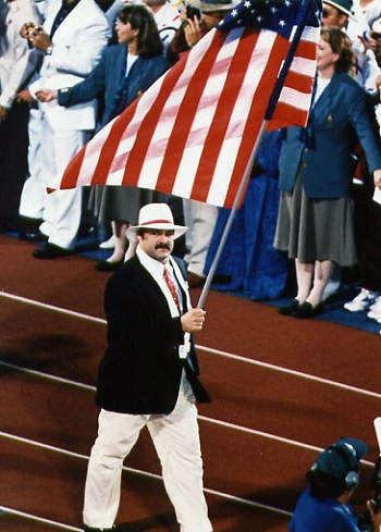 Знаменосец сборной США Брюс Баумгартнер на Олимпийский играх 1996 в Атланте.