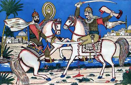 Поединок Баязида I и Тамерлана в битве при Анкаре в 1402. Средневековая арабская миниатюра.
