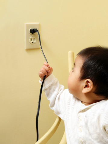 Не забудьте позаботиться о том, чтобы все розетки в доме были заткнуты специальными приспособлениями. Не оставляйте малыша одного!