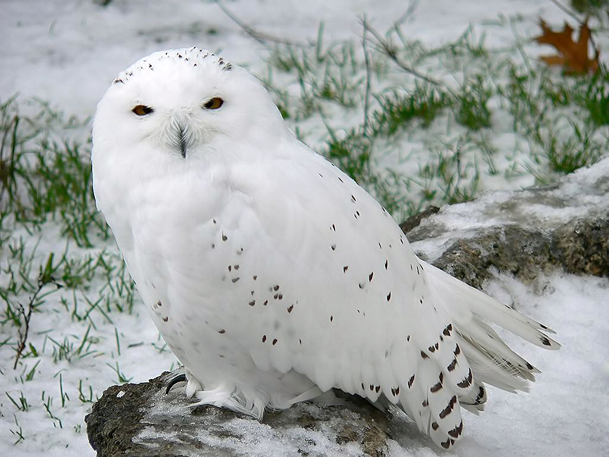 Белая сова. Чем моложе птица, тем больше у нее в оперении темных пестрин.