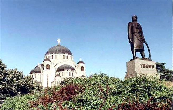 Белград. Храм-памятник Святого Саввы. На переднем плане — памятник Карагеоргию.