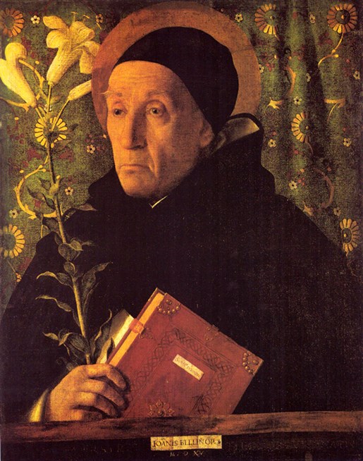 Джованни Беллини. Фра Теодоро Урбинский в образе святого Доминика. Около 1515 года. Холст. Лондонская национальная галерея. Фра Теодоро Урбинский был монахом доминиканского монастыря святых Иоанна и Павла в Венеции.