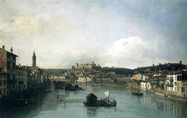 Бернардо Беллотто. Вид Вероны и реки Адидже.
