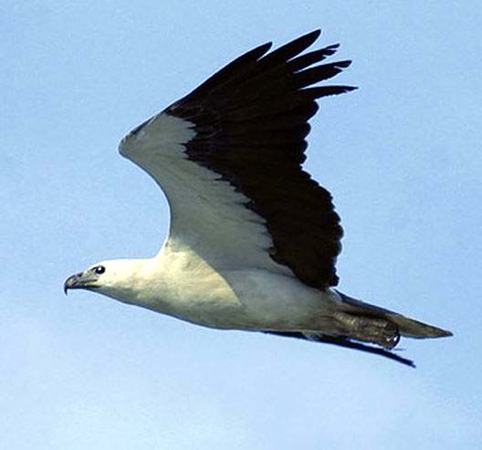 Широкие длинные крылья белобрюхого орлана (Haliaeetus leucogaster) – их размах может превышать 2 м – в полете образуют характерный V-образный силуэт.