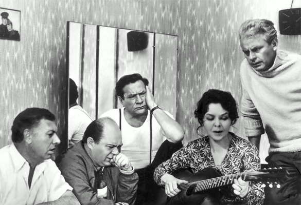 Главные герои фильма Андрея Смирнова "Белорусский вокзал" в исполнении Анатолия Папанова, Евгения Леонова, Алексея Глазырина, Нины Ургант и Всеволода Сафонова.