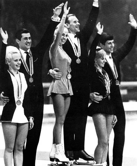 Звезды фигурного катания: Людмила Белоусова и Олег Протопопов (олимпийские чемпионы в парном катании на Олимпиаде в Гренобле) и серебряные призеры Олимпиады Татьяна Жук и Александр Горелик. 1968.