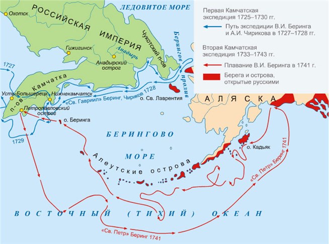Беринг Витус Ионассен (камчатские экспедиции, карта)
