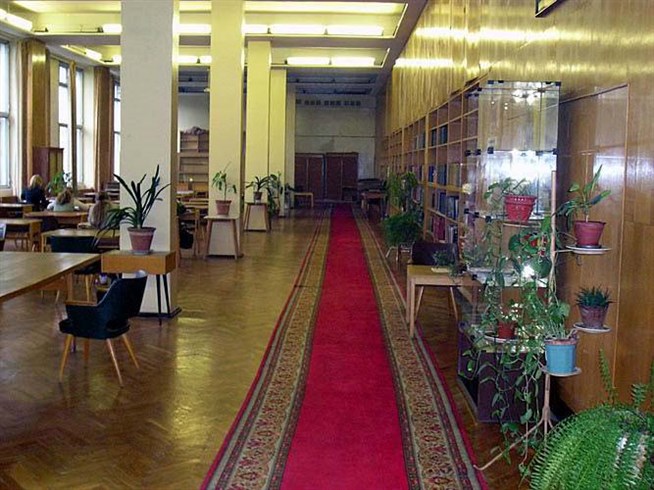 Вид общего читального зала Государственной общественно-политической библиотеки.