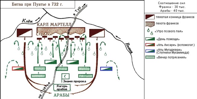 Битва при Пуатье 732 г. стала переломным моментом в войнах франков с арабами, после которого было остановлено дальнейшее продвижение арабов в Европу.