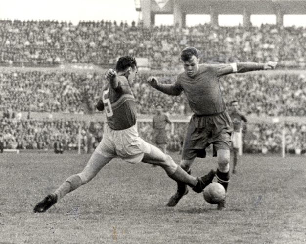 Всеволод Бобров был универсальным спортсменом. Он одинаково мощно играл и в футбол, и в хоккей.