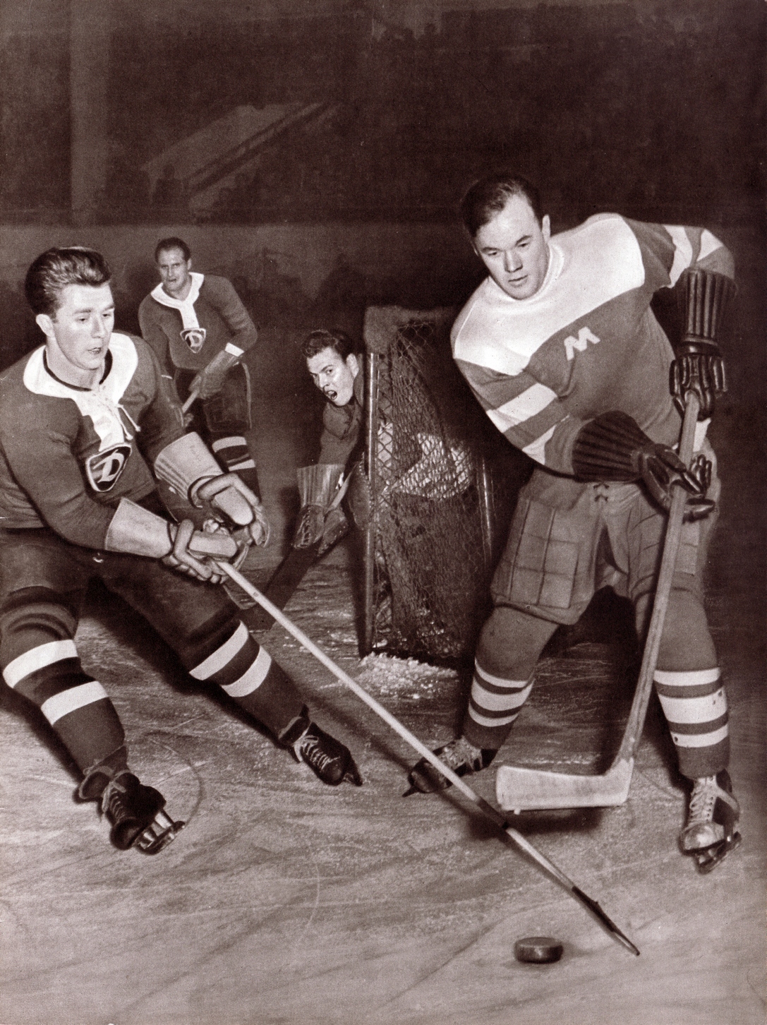 Всеволод Бобров — выдающийся советский хоккеист. В составе сборной Москвы против динамовцев Берлина. 1954 год. Источник: