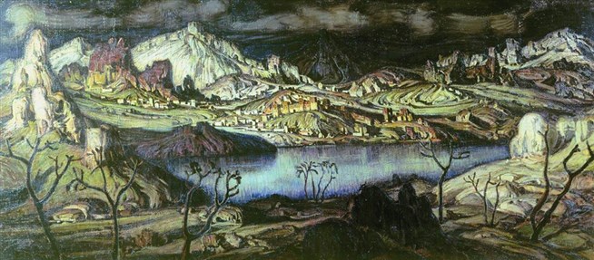 К.Ф. Богаевский. Киммерийская область. 1910 год. Холст, масло. Художественно-исторический музей, Серпухов.