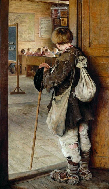 Н.П. Богданов-Бельский. У дверей школы. 1897 год. Холст, масло. Русский музей, Петербург.