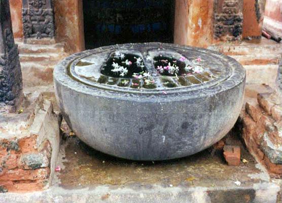 Образ Будды не воспроизводился до 2 в. н.э. Один из способов указать на его реальность — изображение отпечатков его стоп. Отпечатки стоп Будды в храме Махабодхи. Бодх-Гая. Индия.