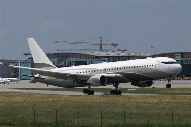 Самолет Романа Абрамовича Боинг 767-300 P4-MES. В салоне самолета находятся банкетный зал на 30 человек, кухня, рабочий кабинет, спальня. Внутренняя отделка самолета сделана из золота и красного дерева. Фото: Juergen Lehle, albspotter.eu