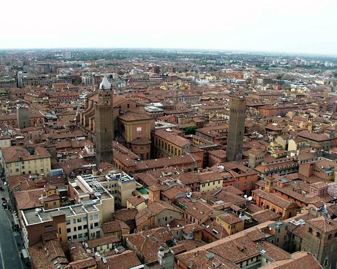 Болонья. Панорама города. В центре собор Сан-Петронио.