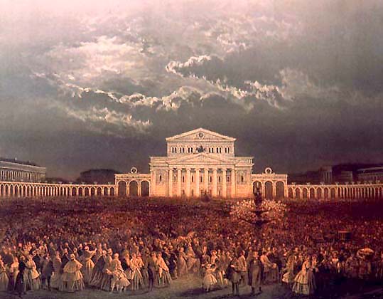 А. Садовников. Театральная площадь в день открытия Большого театра 20 августа 1856.