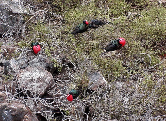 Группа больших фрегатов на гнездовье.
