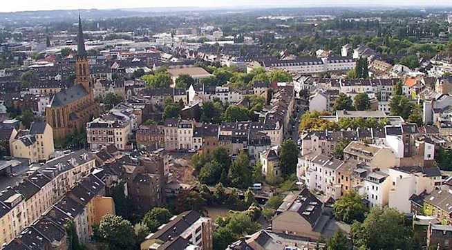 Бонн. Панорама города. Слева: Мюнстер (собор), важнейший храмовый памятник города. Строительство началось в 12 в. и продолжалолсь несколько веков.