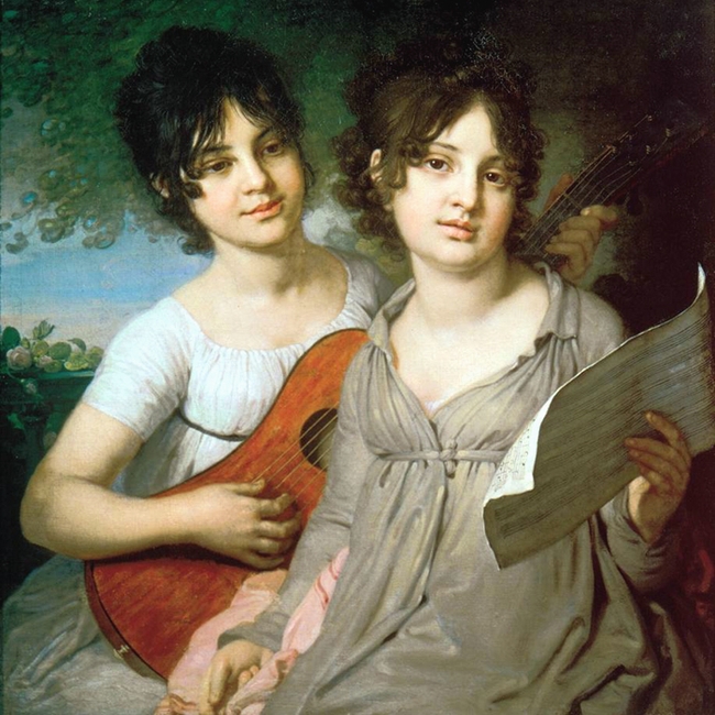 В.Л. Боровиковский. Портрет сестер княжон Анны Гаврииловны и Варвары Гаврииловны Гагариных. 1802 год. Холст, масло. Третьяковская галерея, Москва.