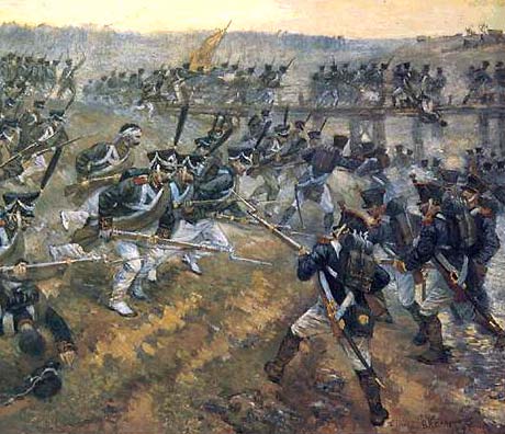 В.Г. Келлерман. Атака гвардейских егерей и матросов при селе Бородине. 1957 год.