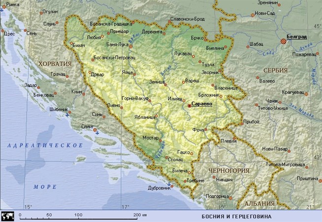 Босния и Герцеговина (географическая карта).
