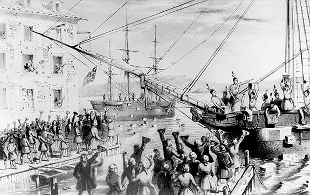 Бостон. Бостонское чаепитие. В 1773 в знак протеста против беспошлинного ввоза английского чая жители Бостона, переодевшись индейцами, совершили налет на три британских судна и выбросили за борт 342 ящика с чаем. Правительство Великобритании закрыло порт Бостона и направило в Новую Англию военные корабли. Это послужило всеобщему сопротивлению власти британской короны.