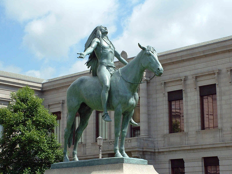 Американский скульптор К. Э. Доллин. «Взывая к Великому Духу», 1909. Скульптура перед входом в здание Бостонского музея изящных искусств.
