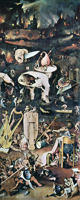Иероним Босх. Ад. Правая створка триптиха «Сад земных наслаждений». Около 1500 года. Прадо, Мадрид.