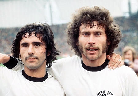 Пауль Брайтнер (справа) и Герд Мюллер на чемпионате мира 1974.