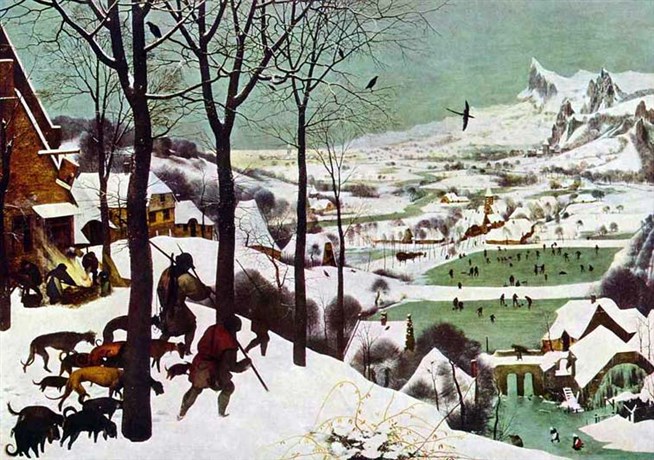 Питер Брейгель-старший. Охотники на снегу (январь). Из серии Времена года. 1565 год. Музей истории искусства в Вене.