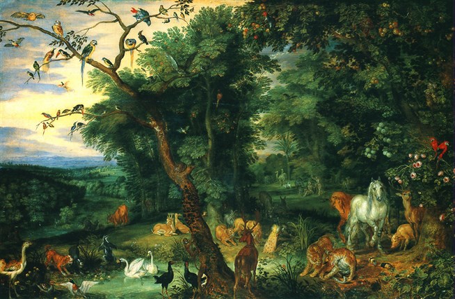 Ян Брейгель-старший. Рай. Около 1620 года. Дерево, масло. Музей Виктории и Альберта, Лондон.