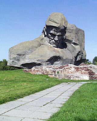 Погрудная скульптура воина высотой 33, 5 м. Выполнена из бетона. На ее обратной стороне - рельефные композиции, рассказывающие об отдельных эпизодах героической обороны крепости: «Атака», «Партийное собрание», «Последняя граната», «Подвиг артиллеристов», «Пулеметчики».