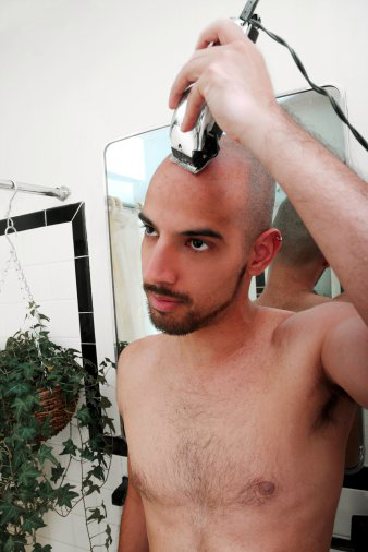Бритье волос проводят в два приема: вначале по направлению роста волос, затем против направления роста волос.