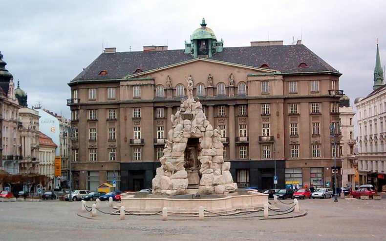 Брно. Фонтан «Парнас» на площади Фруктового рынка.