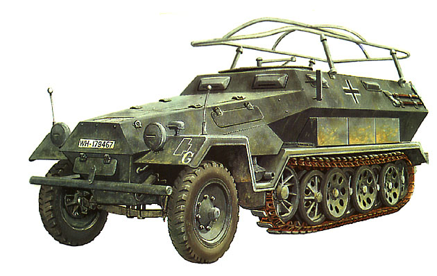 Командно-штабной легкий бронетранспортер Sd Kfz 250/3 был оборудован с радиостанцией FuG8 и рамочной антенной.