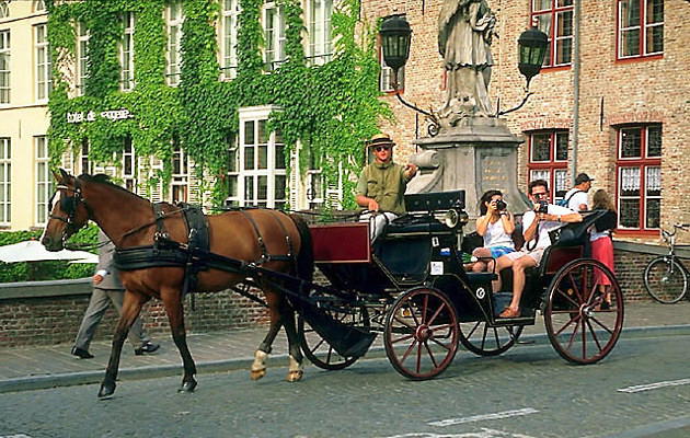 Туристическая прогулка в конном экипаже. Брюгге.
