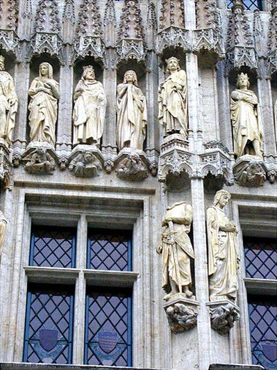Брюссель. Скульптуры на фасаде городской ратуши на Гран-Плас.