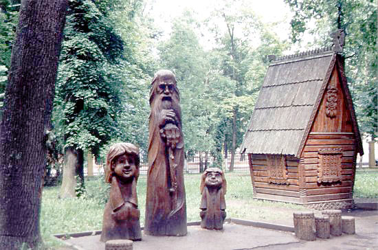 Брянск. Экспонаты музея деревянной скульптуры в Парке культуры и отдыха имени А.К. Толстого.