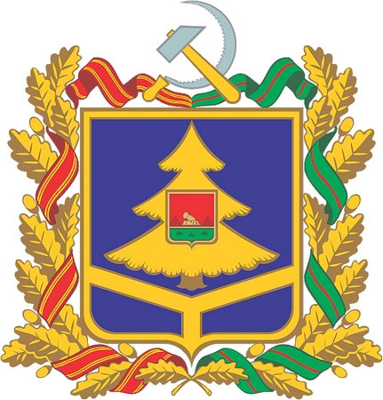 Герб Брянской области был принят 20 ноября 1998 года. В нижней части щита из одной точки расходятся три золотых луча, делящие его на три части. Этот элемент указывает на положение Брянщины на стыке России, Украины и Белоруссии. Золотая ель с трехярусной кроной — символ Брянского леса. В центре ели герб Брянска. Герб окаймляет дубовый венок. Правая сторона венка переплетена лентой ордена Ленина, которым область была награждена в 1967 году, левая — лентой медали «Партизан Великой Отечественной войны». Серп и молот в разрыве венка над центром гербового щита символизирует союз рабочих и крестьян и то, что область была образована при Советской власти.